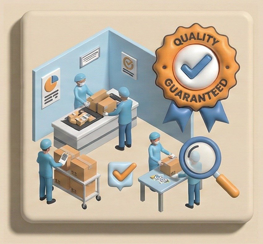 Pengemasan Produk akhir dengan label lengkap dan inspeksi kontrol kualitas .